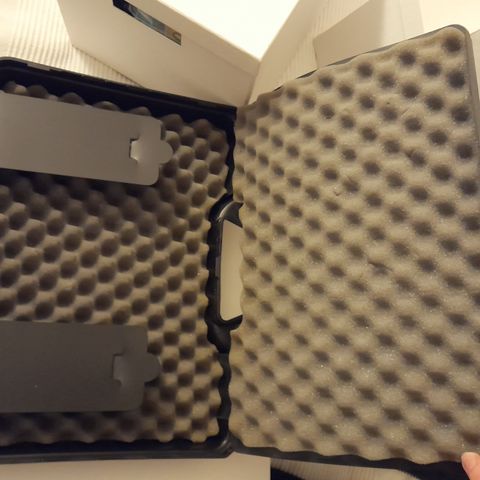 Kufferten har blødt skum i pyramideform på indersiden, som holder figurerne på plads under transport.