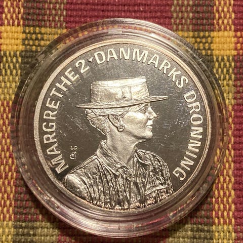 Dronning Margrethe 200 Krone Sølvmønt 38 mm