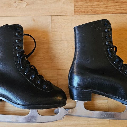 Sorte kunstskøjter i ægte læder (herre) str. 43 - vintage - fin stand