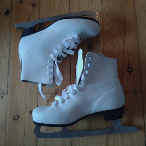 Solide skarpe meder / skinner (uden beskyttere) - to uens snørrebånd, som let kan skiftes.