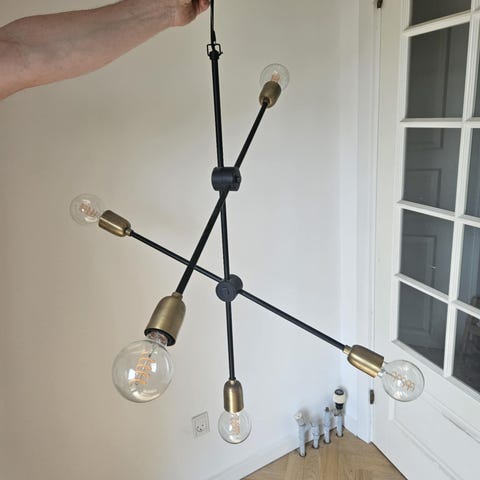 Den stilfulde Molecular lampe fra House Doctor i mat sort med smukke messing fatninger.