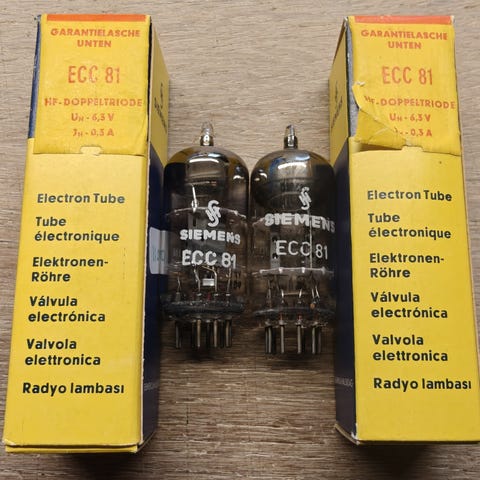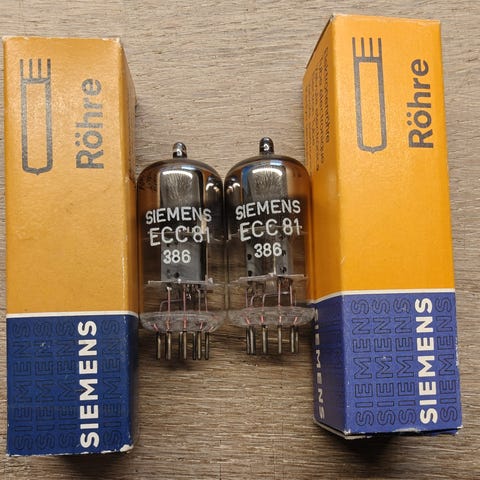 Et par NOS Siemens EL34. Produceret af Ei i Jugoslavien.