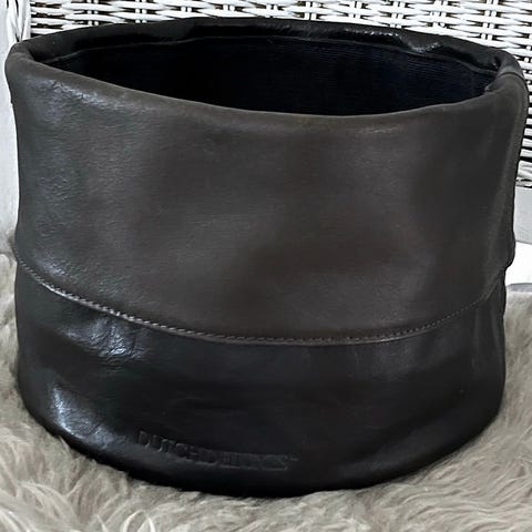 Homemade brødkurve med brødpose & “skjulere” til kleenex i upcykled læder fra kvalitetssofaer