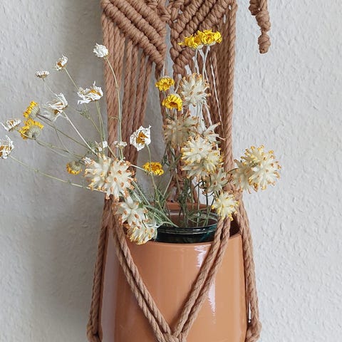 Håndlavet af genanvendt økologisk bomuld. Krukke og plante kan tilkøbes. Følg mig gerne på Instagram Knyttehyblen. Kan godt sende på købers regning.