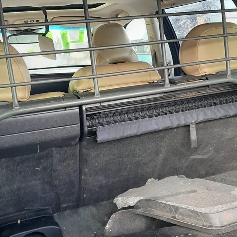 Hundegitter volvo v70 00 til 2007 model med beslag og gasdæmper så det foldes op under taget når det ikke bruges.