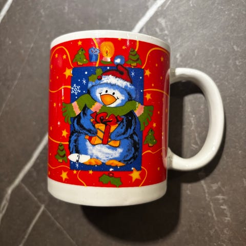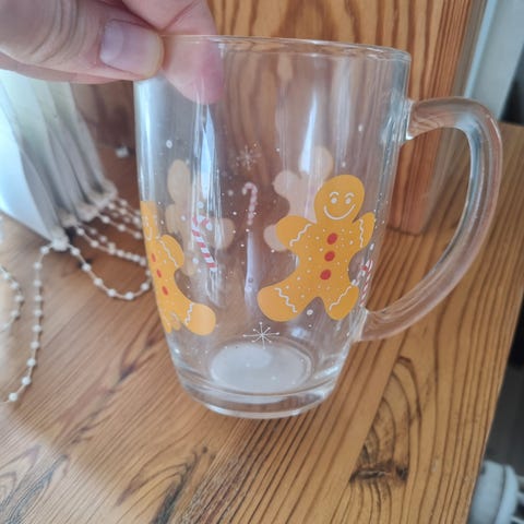 Sælger flot jule krus med en bamse forrest og en kristen tjørn på bagsiden af kruset. Sendes sammen med andet.