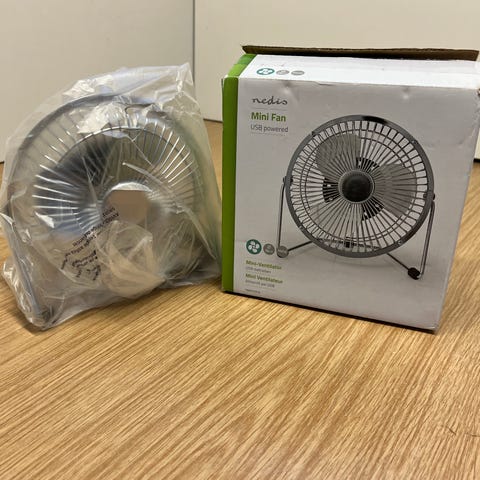 Kompakt bordventilator drevet via USB-C – perfekt til skrivebordet, soveværelset eller kontoret.