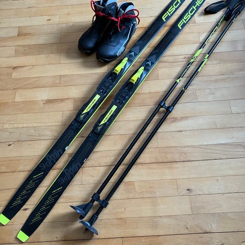 Langrendsski fra Madshus. Bindinger fra Rottefella NNN. Plus stave fra Leki. Brugt én gang af en dreng på 8 år. Hans højde var nok ca. 140 cm. Kan leveres i Københavnsområdet for en 50er oveni.