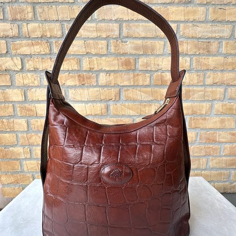 Lækker Mulberry Roxanne. Vintage modellen fra 2004 som står originalt og velpasset i Sort bøffel læder og præget i krokodille mønster