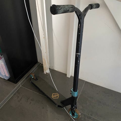 Tilt SCS Stunt Scooter Styr i sort farve med gule greb. Designet til brug på stunt scootere, lavet af holdbart materiale. Passer til standard scooter styrstørrelser. Og bredde:56 cm.