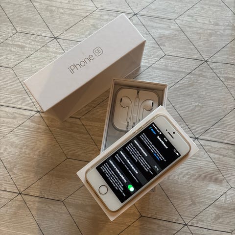 iPhone SE i guld. Har lidt ridser i skærmen som kan ses på billeder, men den fungerer som den skal - kom med et bud!!