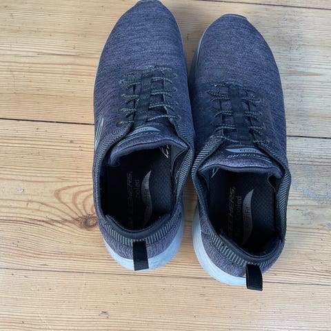 Skechers Sneakers i størrelse 42.5 med flerfarvet design. Skoene har gule snørebånd, blå, grønne og røde detaljer samt en gummisål med mønster for greb. Materialet er velegnet til daglig brug og giver komfort til fødderne.