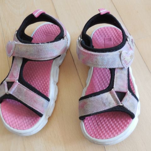 Roxy børnesandaler til piger i størrelse 21. Sandalerne er lilla med et mønster på sålen og justerbare stropper. Materialet er syntetisk, designet til børn.