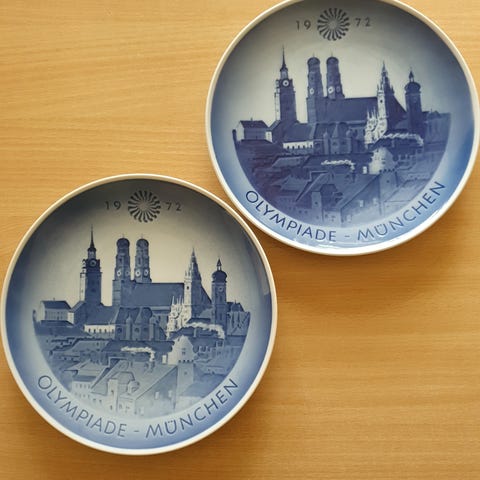 Olympiadeplatte OL platte, Royal Copenhagen, Royal Copenhagen OL platter fra 1972 München sælges for 20,00 kr. pr. stk. De er alle hele og fine uden skader.