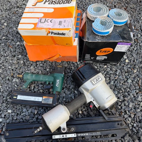 TJEP TF-18/45 stiftepistol til brug med stifter. Værktøjet har et ergonomisk håndtag og er designet til præcist og effektivt arbejde med fastgørelse af materialer.