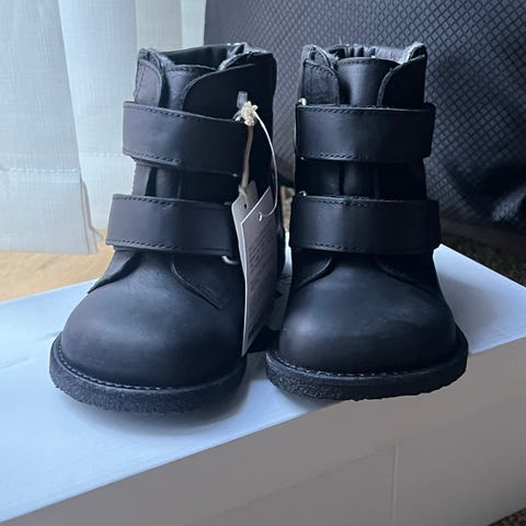 Angulus børnestøvler i størrelse 23, designet til unisex brug. Støvlerne er lavet af gråt læder med elastiske sider for nem på- og aftagning. Sålerne viser brugsspor, men støvlerne er generelt i brugt stand. Velegnede til børn som hverdagsfodtøj.