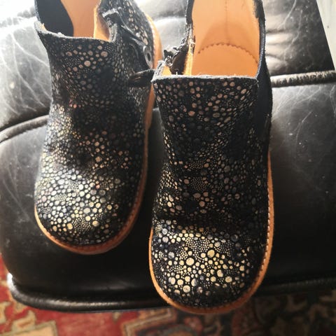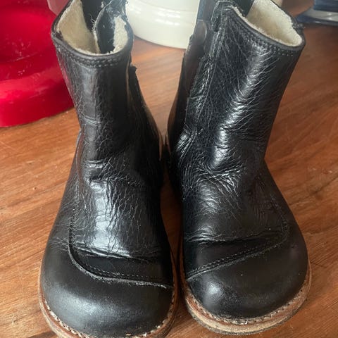 Angulus børnestøvler til unisex i størrelse 26. Støvlerne er lavet af gråt laklæder med elastiske sider for nem af- og påtagning. Sålene viser brugsspor, men støvlerne er generelt i god stand. Velegnet til børn.