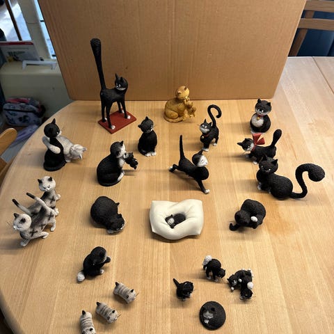 Smukke firnurlig katte figurer fra den afdøde franske kunstner Dubout