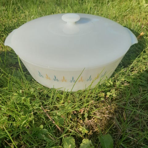 Robust skål med hvid inderside og perlemor (orange) yderside.