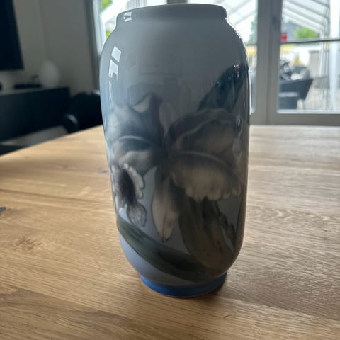 Bing & Grøndahl Vase Keramik Grå med Blomster Dekor