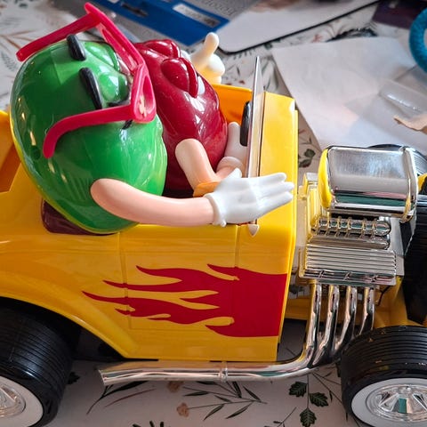M&M's figur i form af en flyveleder, lavet af plast. Figuren er farverig med blå kasket og gule og blå detaljer. Egnet som samlerobjekt eller legetøj.