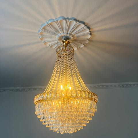 Smal Empire Lysekrone i massiv forgyldt bronze med tre fakle