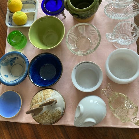 Hver skålmåler ca. 6 × 6 cm og har et spillekort fra kortspil, klør knægt og hjerter knægt