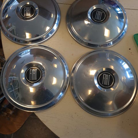Fiat 500 veteran, 1 sæt hjulkapsler med bolte og skiver