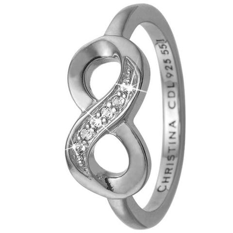 Rigtig flot ring med hvid emalje og hvide Topaz’er. Fra Christina London udført i oxyderet sølv.