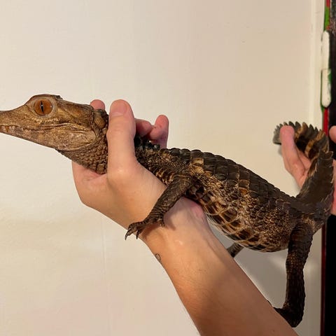 Brun Dværgkaiman unger, fra eget opdræt i Oktober 2025.