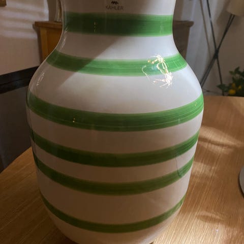 Kahler vase med sorte/lilla striber.