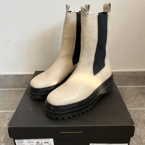 Støvler, Phenumb, str. 38, Off-White, Skind, Ubrugt, Flot og trendy støvle i læder i farven off-white fra Phenumb der er lavet i et råt design. Den har lynlås foran og er designet med en sort kant ved bunden, der giver en fin kontrast til den lyse støvle.