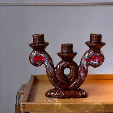 Vintage green twisted ceramic candle holder