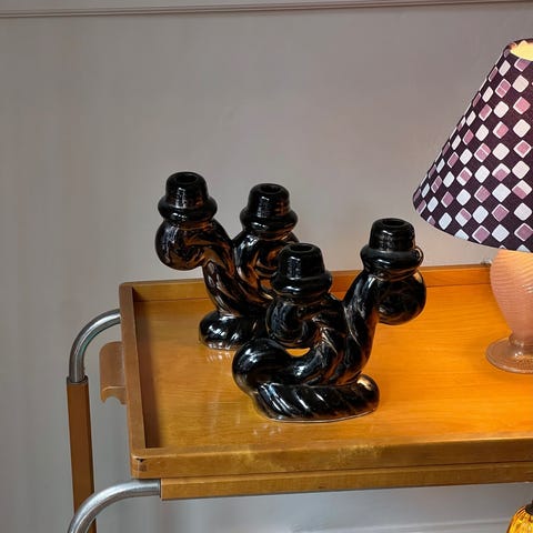 Vintage green twisted ceramic candle holder, France 1960s Good vintage condition H26 x D24 cm