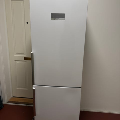 Fuldtnfunktionsdygtigt Bosch køleskab med 3 fryseskuffer. Kapacitet 263 liter køl og 84 liter frys. Har stået i en murstensniche og er derfor ridset på siderne. Der er desuden små buler her og der. Kan afhentes mellem d. 23/11 og d. 26/11. Kom gerne med et bud.