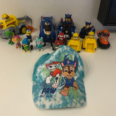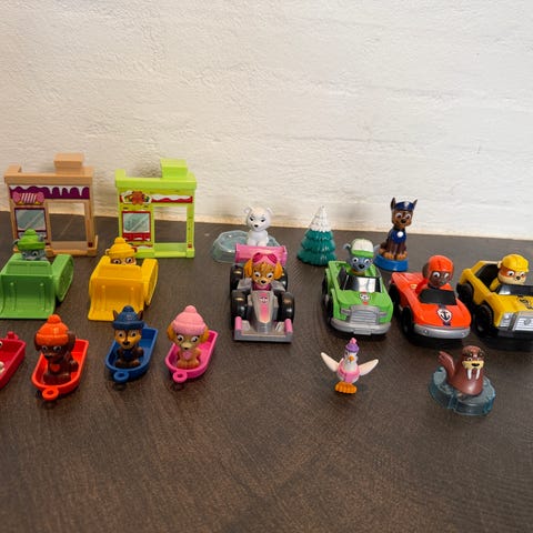 Paw Patrol legetøjssæt indeholdende flere små figurer af karaktererne, køretøjer og tilbehør.