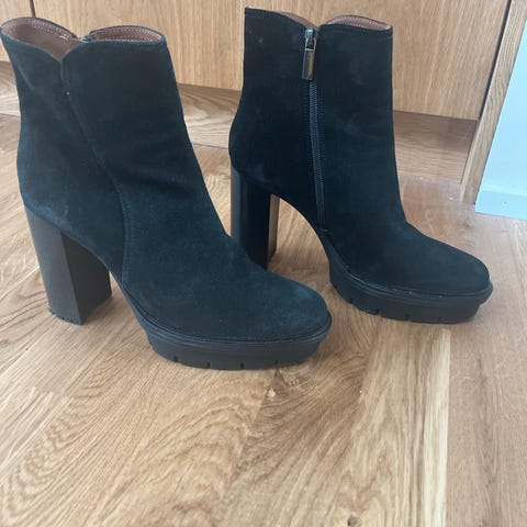 PONS QUINTANA, smuk og anderledes langskaftet støvle i sort med hvid flet i størrelse 37. Sælges den er bred i skaftet, jeg bruger standard skaft men kan få en hånd ned i skaftet ( vurderer at skaftet er xl), og derfor brugt 2 gange. Kan ses og prøves på Frederiksberg.