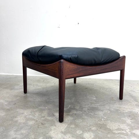 Kristian Solmer Vedel fodskammel fra Modus serien. Designet i 1963. Palisandertræ. Skal have nyt læder og ompolstres. Prisen er sat efter stand kan blive fantastisk efter renovering. Se også mine andre annoncer for stol og sofabord fra samme sæt.