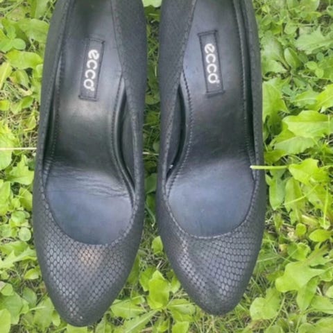 ECCO Festsko i størrelse 38. Skoene er sorte og lavet i lakmateriale. Designet til formelle lejligheder med snørelukning og slidstærk sål.