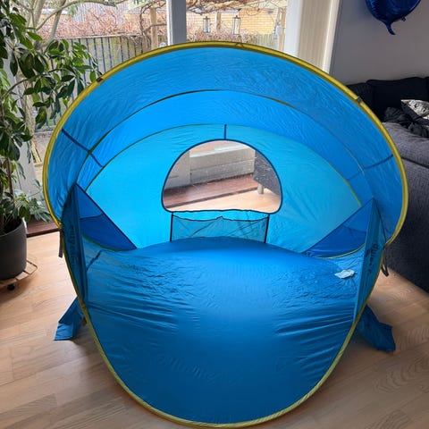 Teltet er med UV-beskyttelse 50+ i teltdugen. Opbevaringspose medfølger.