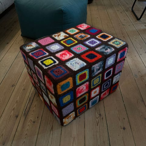 Smuk puf fra Kristina Dam. Desværre har min lille kattekilling kommet til at lave mærker i den og jeg sælger den derfor meget billigt.