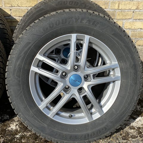 Komplette vinterhjul. 4 stk. Goodyear Ultragrip 9. Rial letmetal fælge. Fin stand. Godt 4 mm dækmønster. Mindre ridser i fælge. Hjulene trænger til en vask.