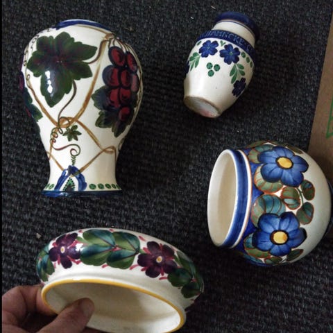 Aluminia vaser med reparation se billeder pris 150 kr pr stk, kan sendes forsvarligt svare kun på sms eller ring på tlf nr 60661540 se også mine andre annoncer og ved køb af mere finder vi en god pris