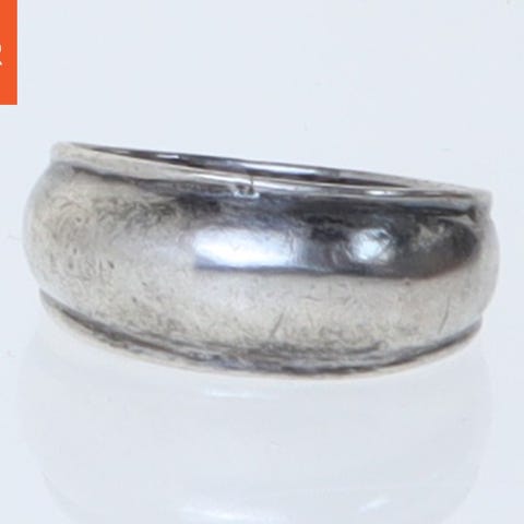 En sølvfarvet ring lavet af metal, med en unik, bøjet form. Denne ring har en størrelse på 55 mm og viser tydelige tegn på brug, såsom overfladeridser. Dens åbne endepunkter giver den et moderne og stilfuldt udseende. Ringen kan passende bruges som en mode accessory til både hverdag og særlige lejligheder.