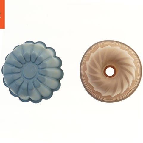 Denne kageform er lavet af keramik og har en diameter på 27,5 cm. Den er glaseret i en brun farve og har et riflet mønster på siden, hvilket giver den et klassisk look. Formens inderside er glat og skinnende, og bunden er præget med en fabrikantens markering.