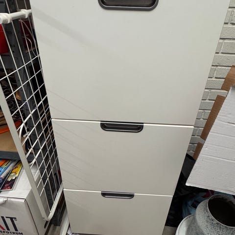 2 stk IKEA skuffemøbel i hvid sælges for 50kr stykket. I den ene fungerer låsen ikke.