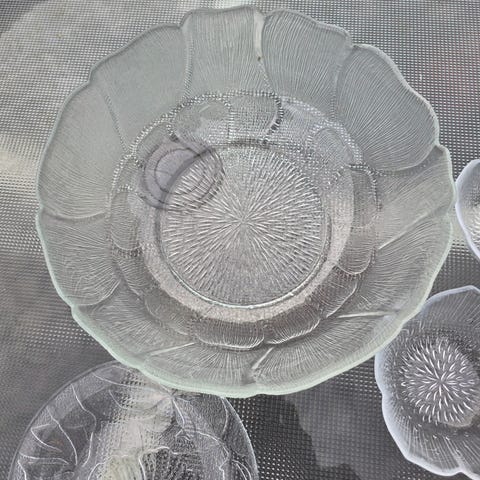 Smukt mundblæst sæt. 4 glas og 2 små karafler. Glassene måler mellem 8.5 og 9cm i højden. Den ene karaffel måler 16cm i højden, den anden 14.5cm. Det er signeret AH 06. I meget flot stand.