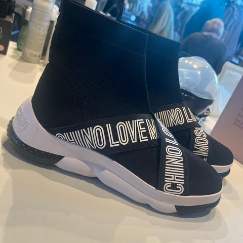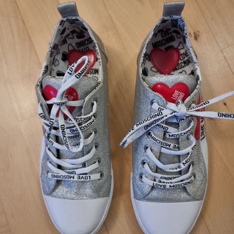 Sneakers, str. 37, Moschino, Sort m/røde hjerter & lyn, Næsten som ny, Meget fine Moschino sneakers str. 37 (true to size). Brugt et par gange. Sorte med røde hjerter og røde lyn.