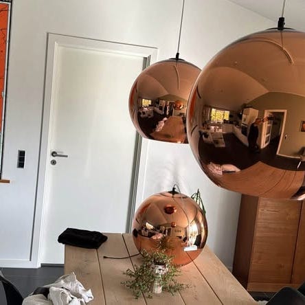 Loftlampe i børstet stål/ kobber, hvidlakeret inderside