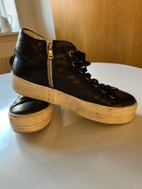 Støvletter, str. 40, mrk. “Made in Italy”, Sorte med nitter, Skind, Næsten som nye. Nypris kr. 1000,-. Sælges for kr. 200,-.